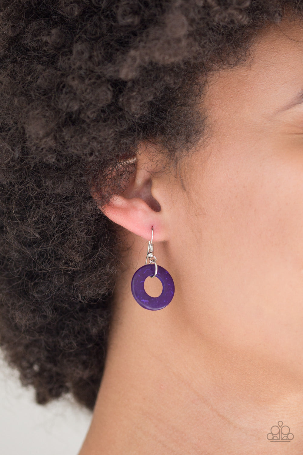 Infused with dramatic brown wooden beads, vivacious purple wooden hoops are knotted in place below the collar for a summery flair. Features an adjustable sliding knot closure.