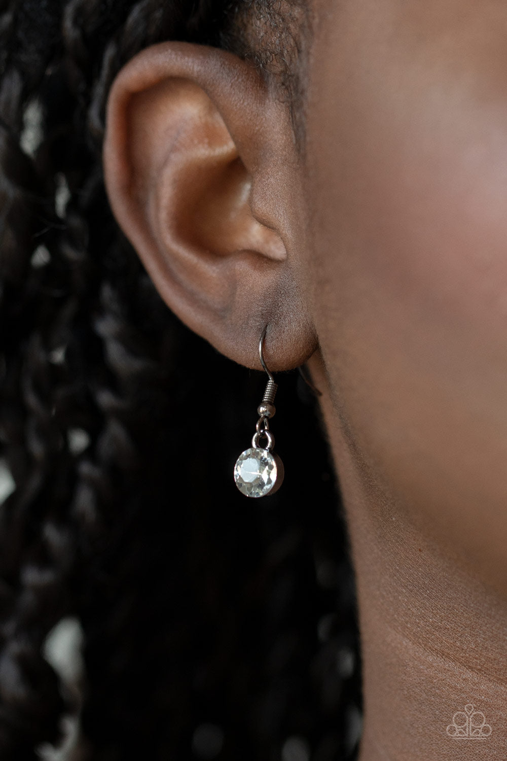 Glittery stacks of glassy white rhinestones gradually increase in size as they drip from the bottom of a classic gunmetal chain, creating a blinding fringe below the collar. Features an adjustable clasp closure.